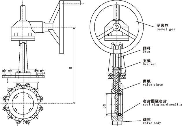 Position: Index>Products>Knife Gate Valve Series>Bevel Gear Knife Gate Valve > Bevel Gear Plum Knife Gate Valve